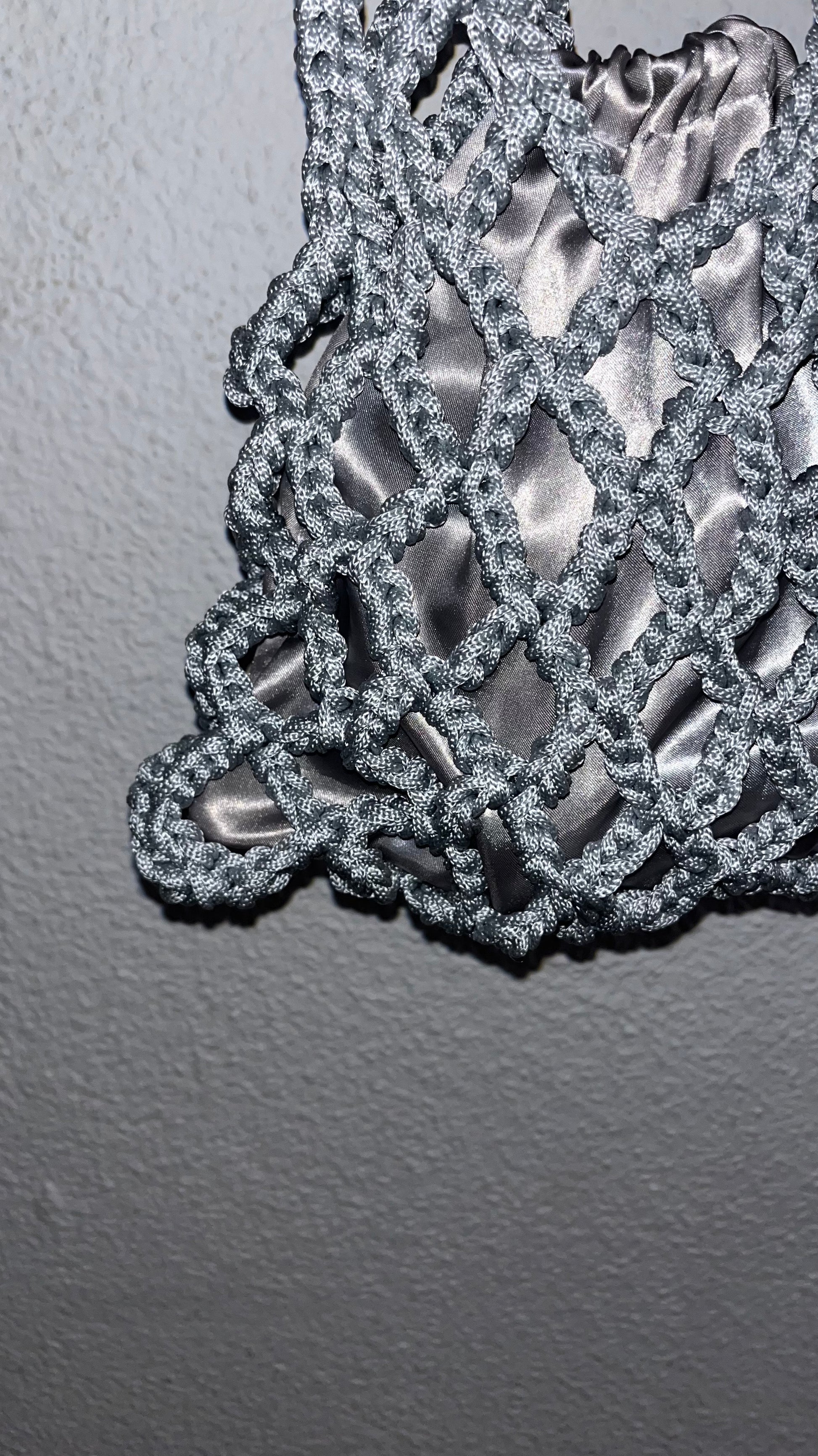 • Diseño: La malla abierta deja entrever la bolsa interior, creando un contraste elegante entre el interior y exterior.